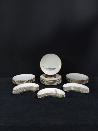 LOTE 129 - JUEGO DE LOZA 45 PIEZAS, DETALLE EN UNA TAPA DE GUISERA