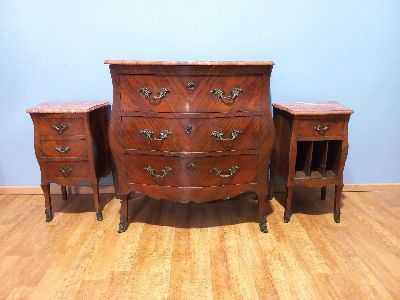 LOTE 274 - COMODA Y 2 MESAS DE LUZ FRANCES CON MARMOL
